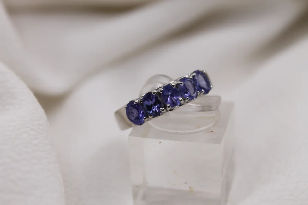 טבעת כסף 925 בשילוב אבני חן טאנזני
