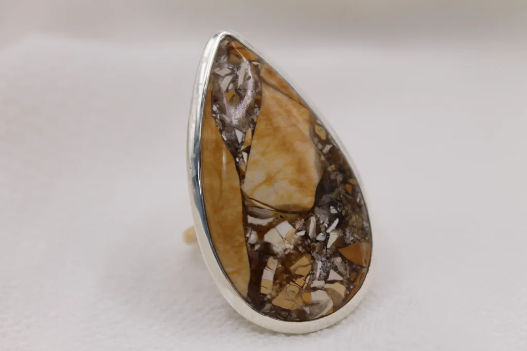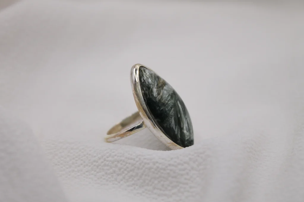 טבעת כסף 925 בשילוב אבן מוקאיט בצורת טיפה