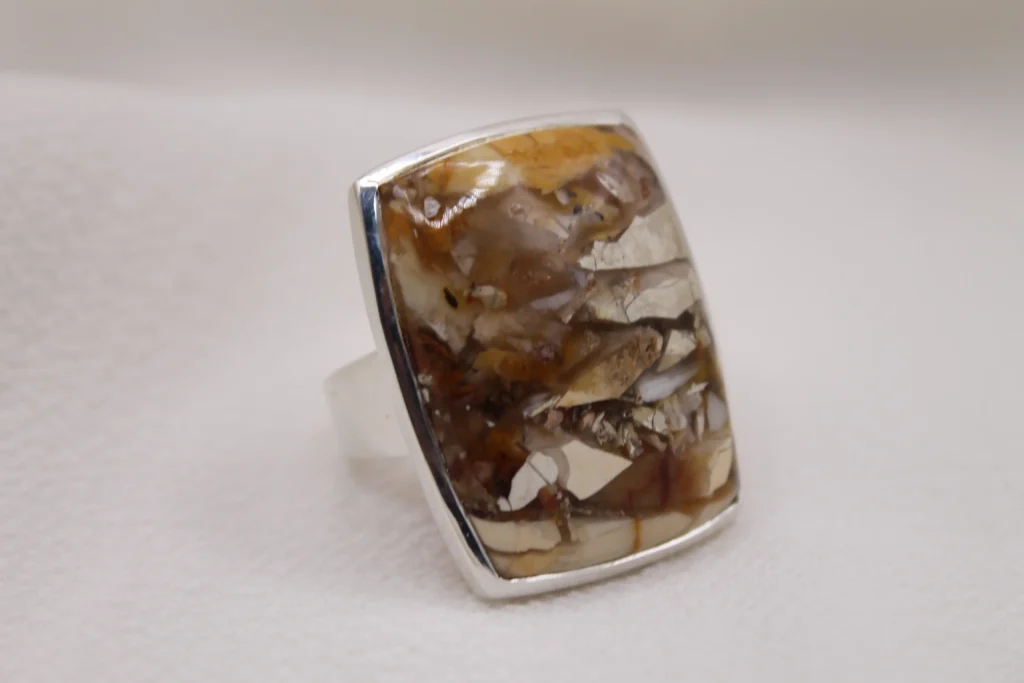 טבעת כסף 925 בשילוב אבן מוקאיט מרובעת