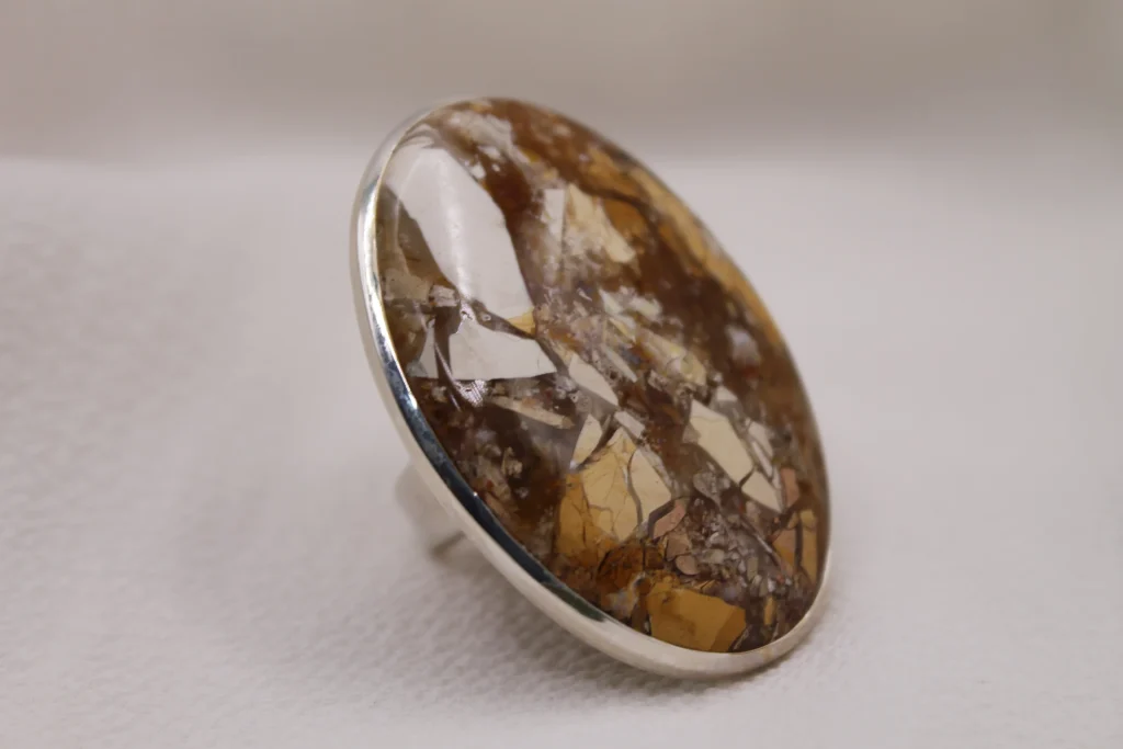טבעת כסף 925 בשילוב אבן מוקאיט עגולה