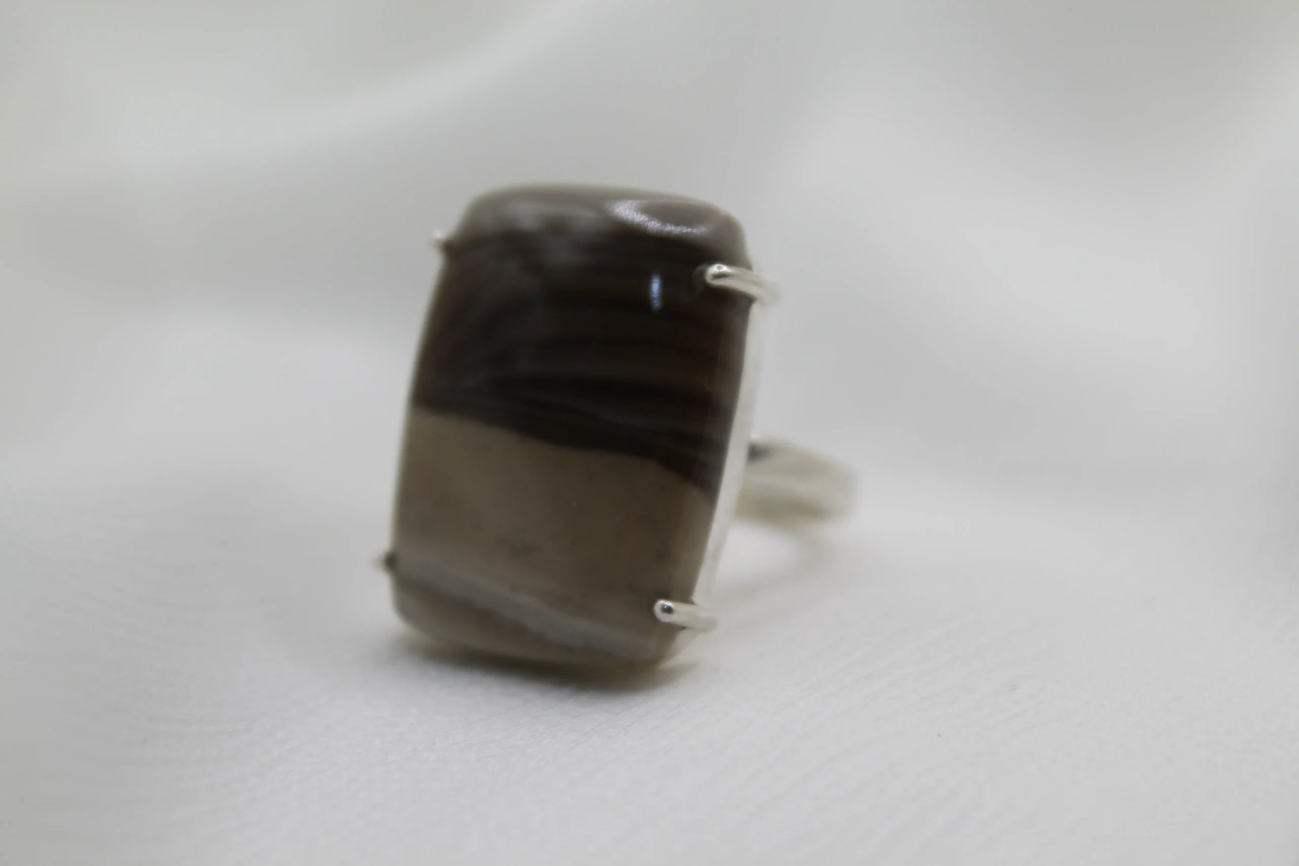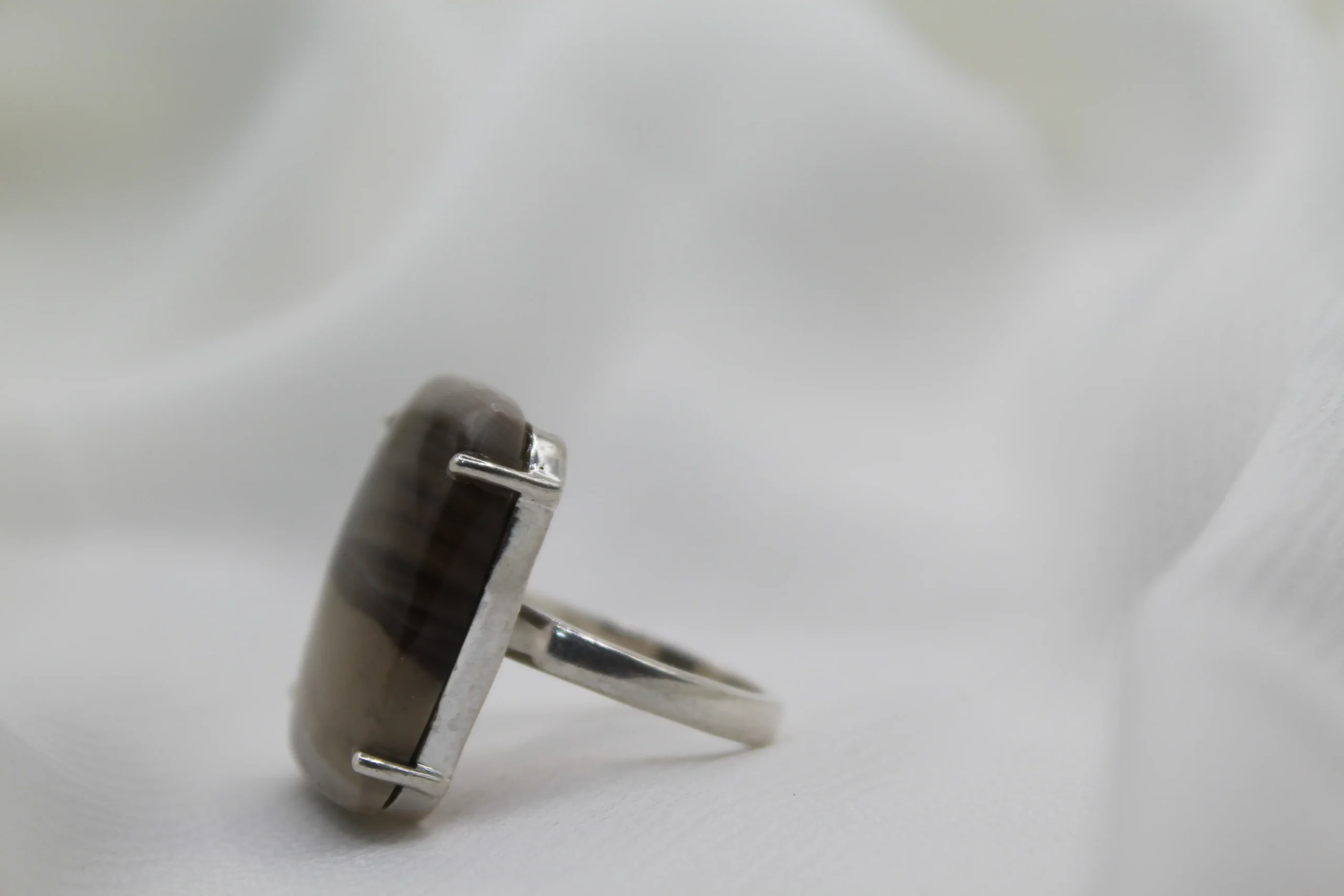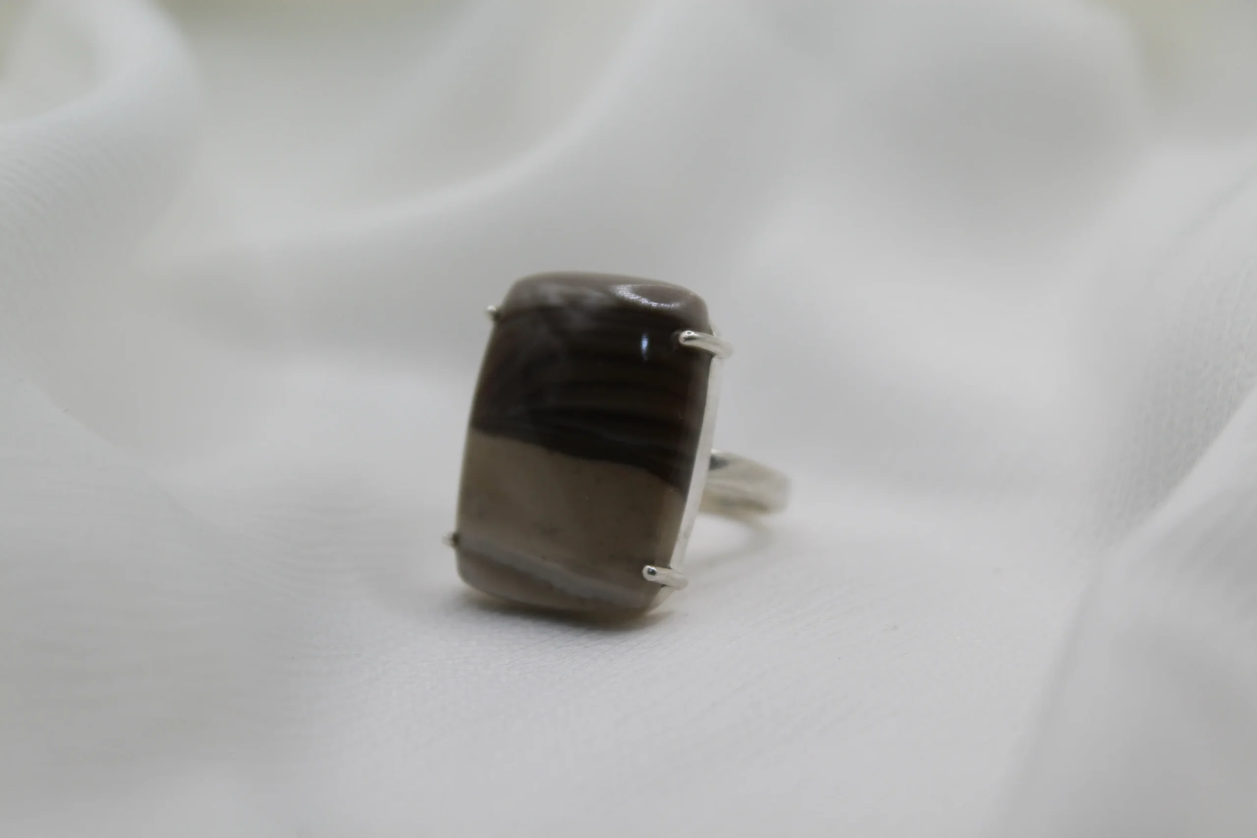 האבן האגאט, עם גווניה המגוונים – מכחולים של ירוק ועד חום עמוק – לא רק שובה את העין, אלא גם נושאת עמה אנרגיה של איזון והרמוניה. האגאט נחשבת לאבן של יציבות ונחת, ומה שהופך אותה לעוד יותר מיוחדת זה התהליך שבו היא נבחרה בקפידה והמגע האישי שהוספנו בכל שלב של היצירה. טבעת הכסף עשויה מכסף סטרלינג, כך שהיא גם עמידה וגם מדגישה את הברק הטבעי של האבן. כל פעם שתניחי אותה על האצבע, תרגישי כאילו את לובשת יצירת אמנות, שתמיד מציעה לך מגע של קסם וסטייל, בין אם את יוצאת לאירוע או סתם מתענגת על יום רגיל. תחושת השייכות וההנאה שהצמיד הזה מעניק לא דומה לשום דבר אחר – זהו ממש תכשיט שנשאר איתך, לא משנה לאן תלכי!