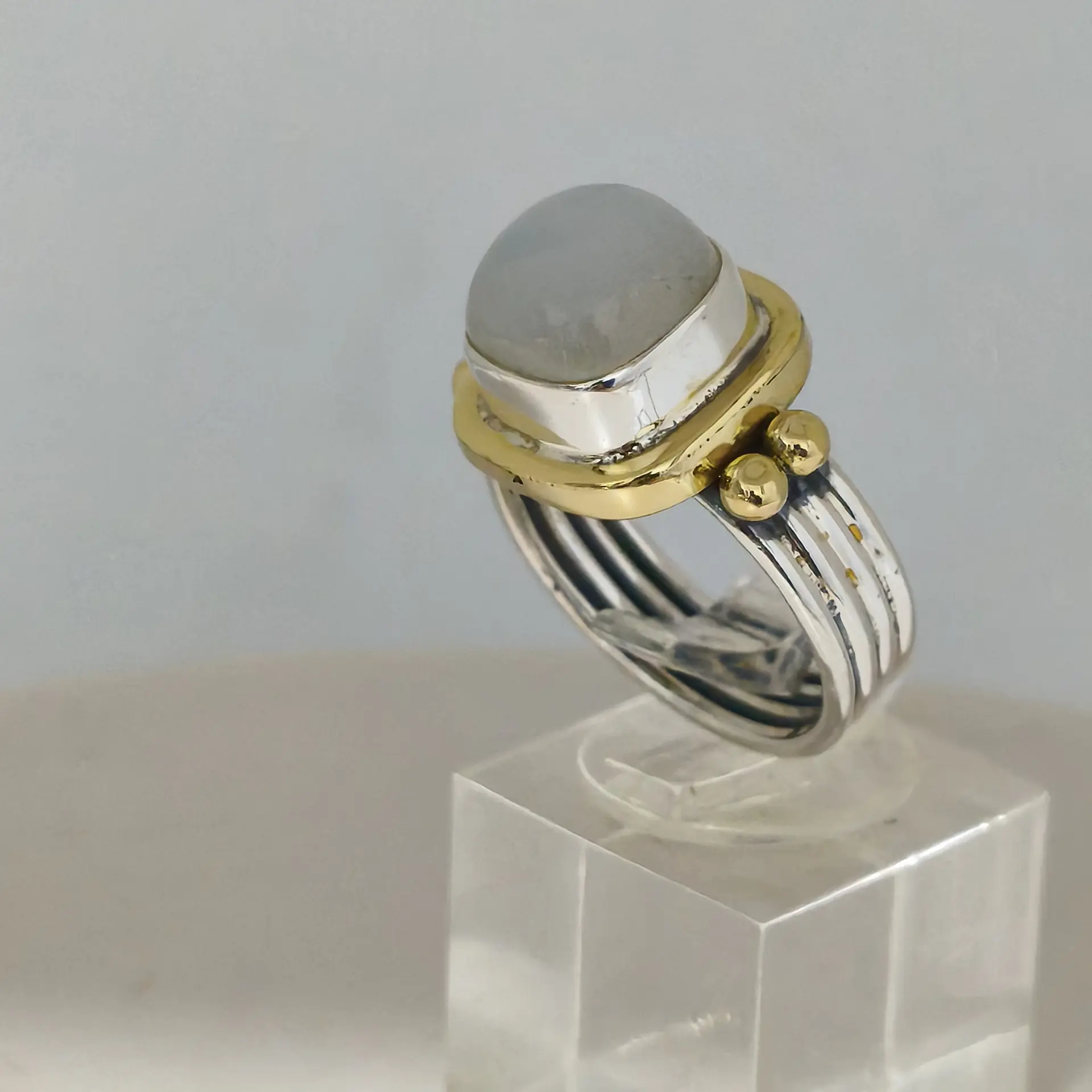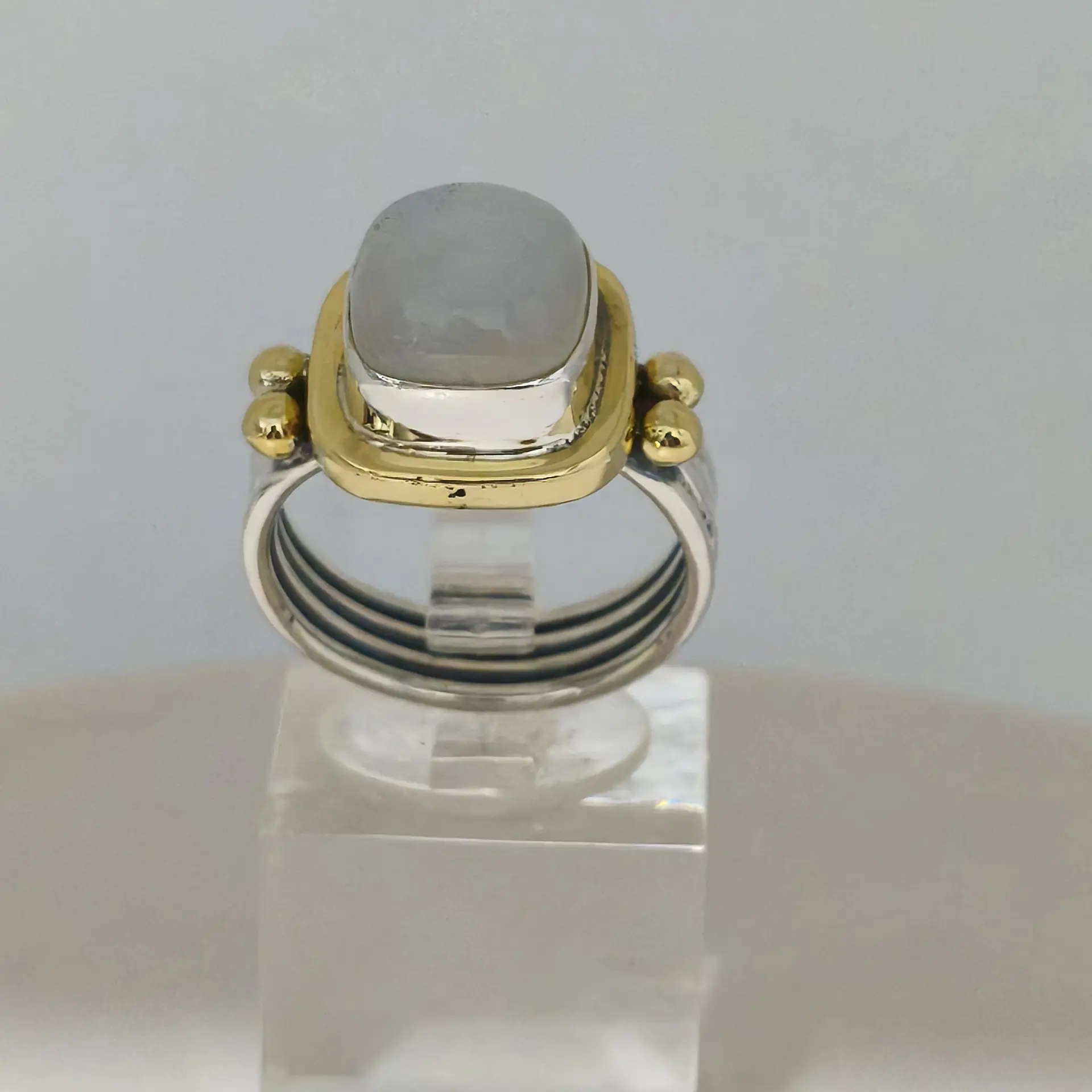 זו טבעת ייחודית המשדרת מראה מודרני ואלגנטי. עשויה במראה משולב של גווני כסף וזהב צהוב, הטבעת כוללת אבן אחת שקופה בצורה אובלית במרכז, מה שמוסיף לה נופך יוקרתי ומושך את העין. האבן משובצת בסגנון בֶּזֶל, המעניק לה מראה מוקפד ומתוחכם. בטבעת גימור מלוטש במיוחד והיא מתהדרת ברצועה רחבה המבטיחה נוחות מרבית על האצבע. הטבעת מתאימה באופן נהדר לאירועים מיוחדים, אך ניתן לשלב אותה גם בלבוש יומיומי למי שמחפשת מגע של סטייל בכל יום.