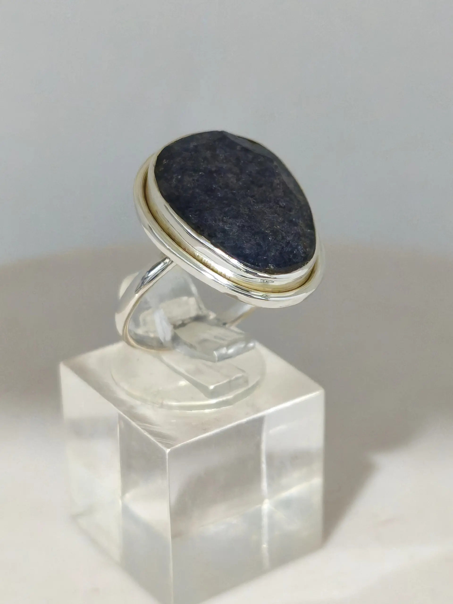 טבעת ‘לאפיס’ מציעה מראה מינימליסטי עם נוכחות מרשימה ואלגנטית. היא מתאפיינת בטון כסף מבריק ובאבן אובלית גדולה בצבע כחול כהה, שמשתלבת בצורה מושלמת במסגרת מסוג בזל. סגנון העיצוב המינימלי מעניק לטבעת תחושת תחכום וזוהר, בעוד שהגימור המבריק מוסיף לה ברק ומדגיש את יופייה הטבעי של האבן. הטבעת כוללת רצועה רחבה, מה שמשפר את נוחות הלבישה ומספק יציבות על האצבע. זו בחירה מושלמת לכל אירוע, בין אם מדובר בלבישה יומיומית שמתאימה למראה קז’ואל אלגנטי, או כהשלמה מושלמת ללוק ערב מוקפד. את יכולה לשלב אותה בקלות עם תכשיטים נוספים בגוונים דומים או לבחור בה כפריט בולט בפני עצמו.