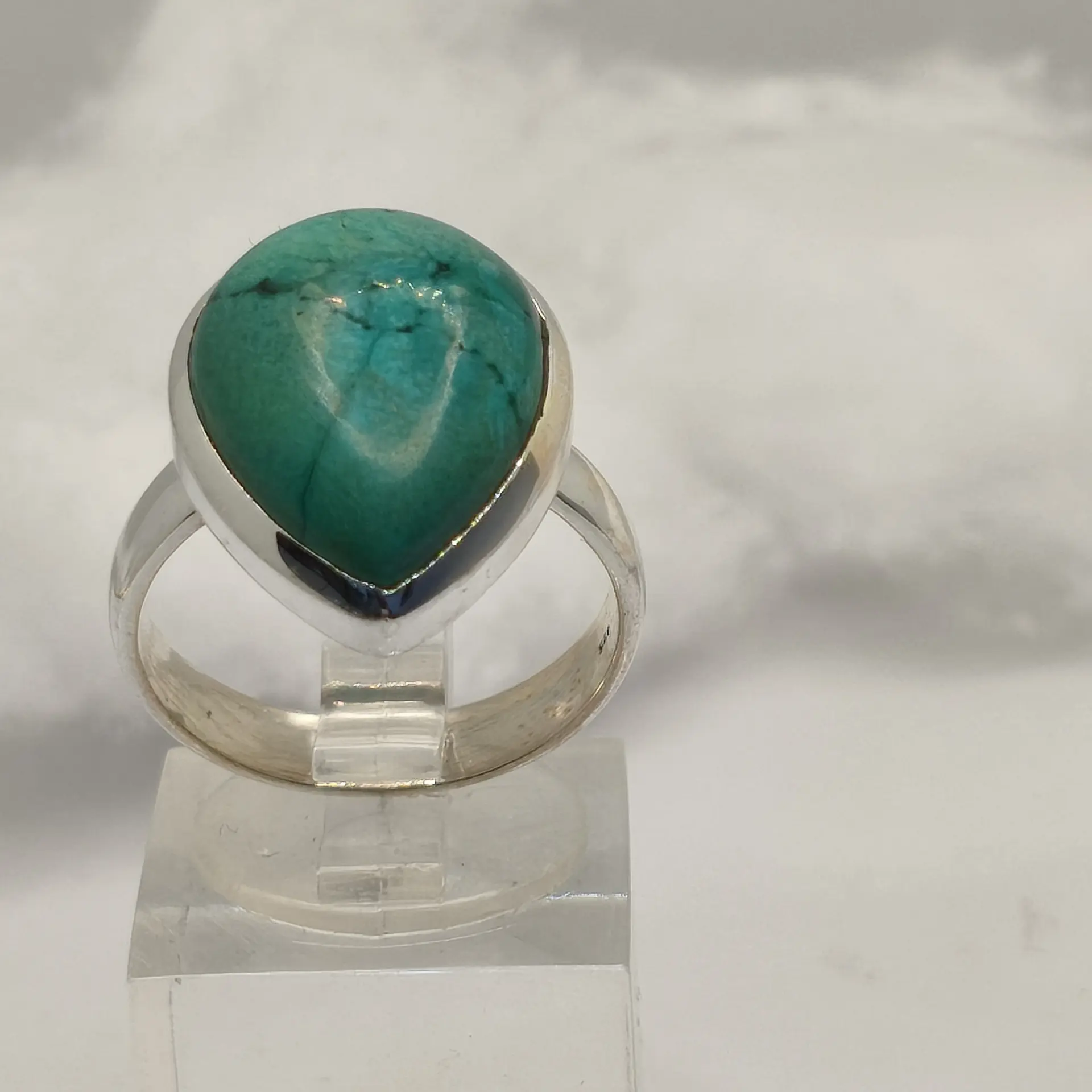 טבעת כסף בסגנון מינימלי ומעודן שמשלבת בין יופי לפשטות. במרכזה, אבן טורקיז בצורת טיפה המוקפת במסגרת ‘בזל’ שמעניקה לה מראה אלגנטי ומשובח. גימור הכסף המבריק נותן לטבעת נוכחות מלאת ברק, בעוד הלהקה הרחבה מבטיחה נוחות מירבית על האצבע. היא מושלמת לשימוש יומיומי, אך לא מאבדת מקסמה גם באירועים מיוחדים. ניתן לשלב אותה בקלות עם טבעות נוספות, או להעניק לה את הבמה כפריט המרכזי בלוק שלך.