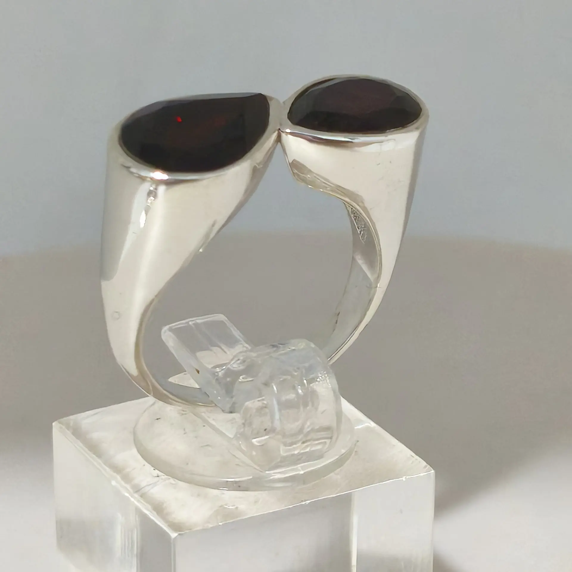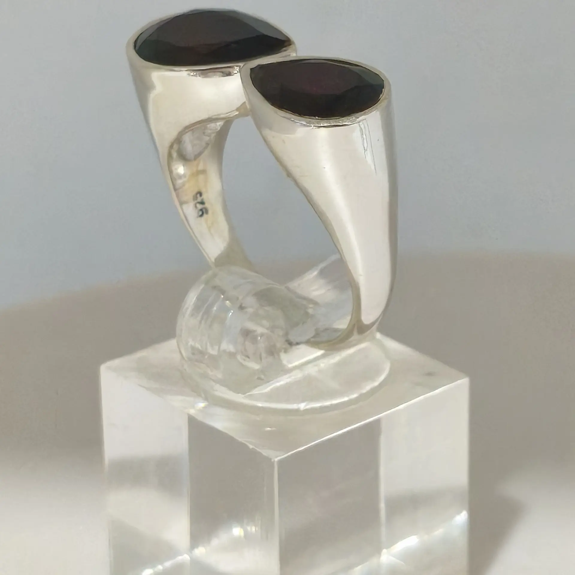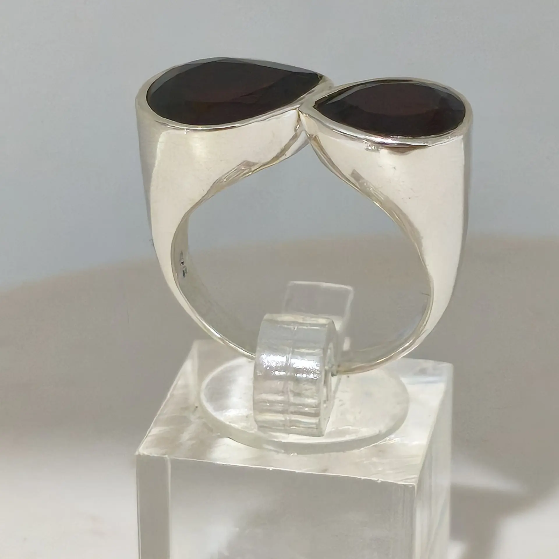 טבעת כסף בסגנון וינטאג’ מושכת אליה את העין בזכות שני אבנים בגוון חום כהה ומראה חיתוך טיפה. האבנים משובצות בעדנה במסגרת מסוג ביזל, מה שמעניק לטבעת מראה עדין וייחודי. גימור הפוליש הגבוה יחד עם הרצועה הרחבה מבטיחים נוחות מרבית על האצבע. זהו תכשיט מושלם להשלמת כל לוק קלאסי או ליצירת מראה נועז ואלגנטי לימי חול או אירועים מיוחדים. דמיין את זה עם שמלה שחורה קלאסית או ג’ינס מעודכן – הטבעת הזו תבלוט בכל מצב.